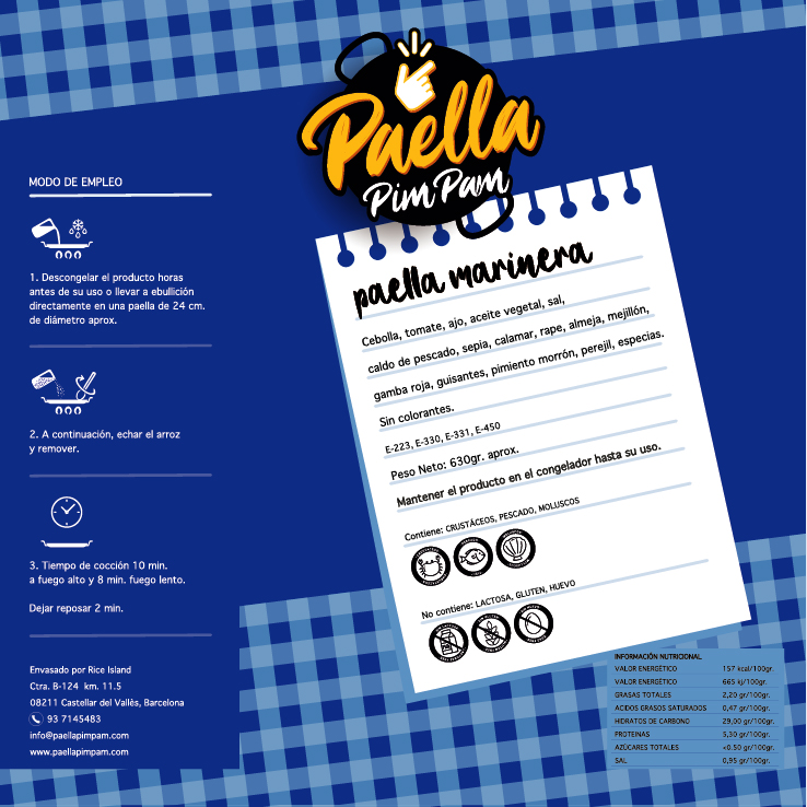 Sepia, calamar, rape, gamba roja, mejillones, almejas, arroz y caldo